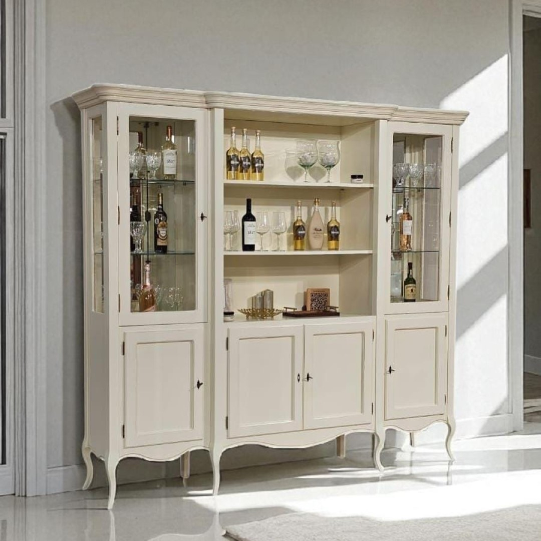 Această piesă de mobilier combină funcționalitatea unei biblioteci cu aspectul unui bar elegant, fiind ideală pentru amenajarea unui living sau a unui spațiu de divertisment. Are dimensiunile L: 2415 mm, A (adâncime): 568 mm, H: 2180 mm, oferind un volum generos de depozitare și expunere.