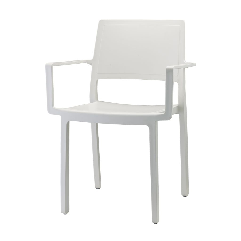 Scaun cu brate pentru terasa sau restaurant Kate, cu design liniar si discret, linii curate si decisive, ergonomic si confortabil.